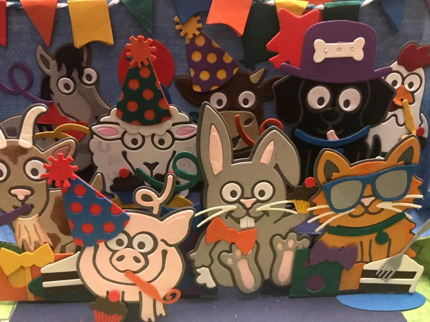 So this week Crazy4Challenges challenge is a different one, apparently its national Fried Chicken 🍗 day in the U.S (who new) so this weeks challenge is to create a card with a bird on it. Well, I have a chicken 🐓 and all his barnyard friends. This card was also made as a request, I had a family friend who asked if I could make a birthday card for her grandson, I believe her words were “Can you make a birthday card for my almost-three-year-old grandson, maybe a farm theme” What my crazy craft brain heard was “I need a farm card with every farm animal you have, make sure ist big, bright, multicoloured, with balloons, streamers and party hats……. oh and don’t forget the cupcakes.”   My son actually told me I was insane 🤪hahaha