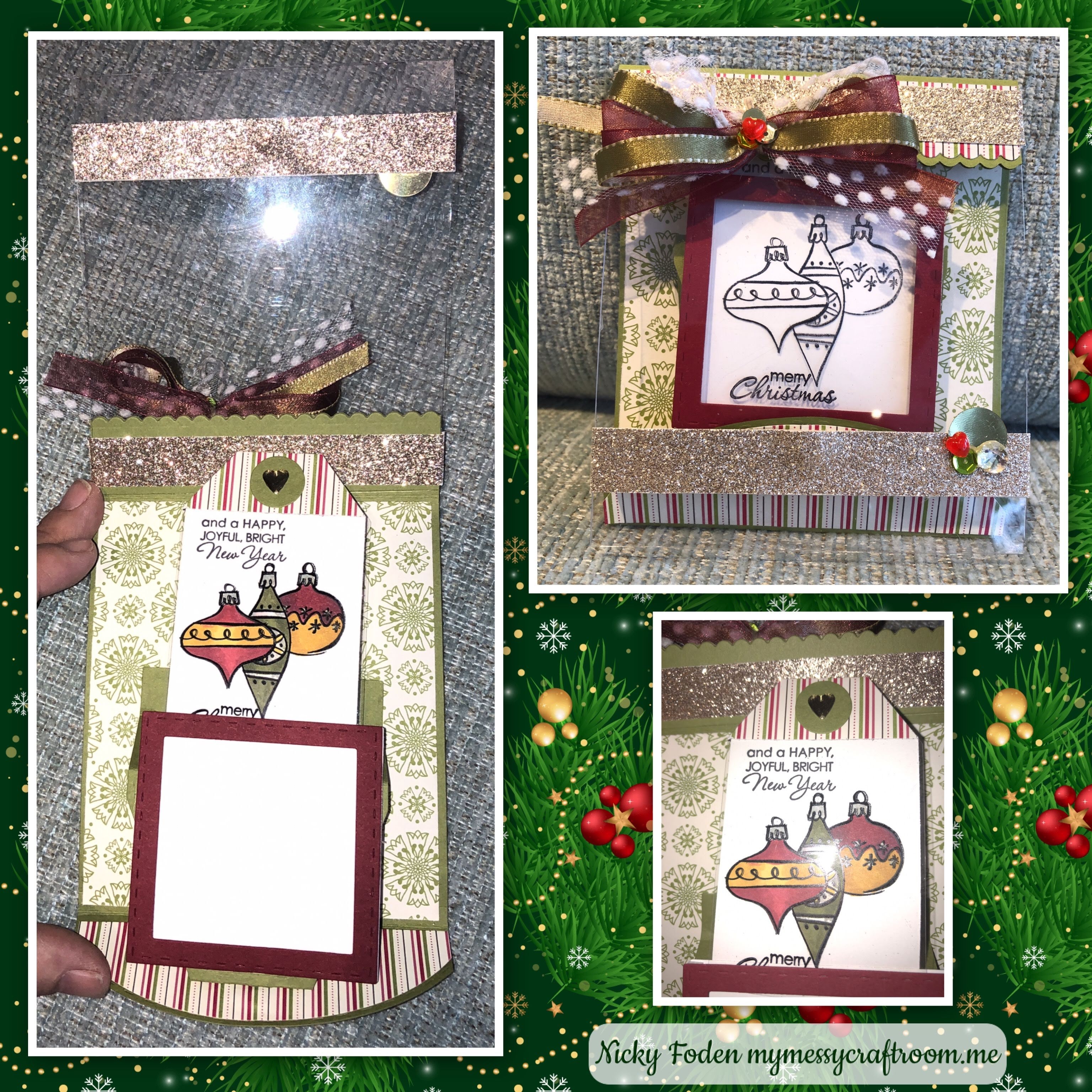 In Early November I made a Triple Flip Ornament card , I thought it turned out pretty neat so I thought I would try it again. The first card was a 5 1/2″ square card and I made it in a green. This time I created a 7 1/4″ x 4 3/4″ rectangle and I made it in a red, and I used a different patterned paper. I hope you like 🙂